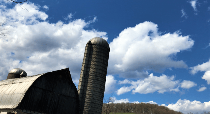 After four hours of hiking and no fish, you can see the farm road again. Your son, with his strong legs, walks all the way back to the parking lot to get one of the cars, and you sit on a log, across from an old barn, a silo and some cows, and wait for your ride.