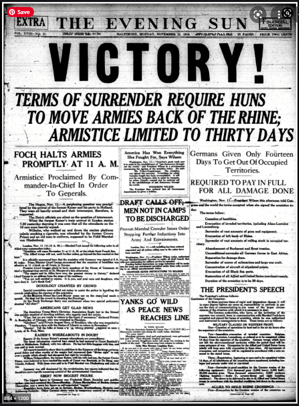 This didn’t happen because of poor communications. It happened because “some men just want the fight.” (See clip from the film, 1917.) Allied commanders, fully aware of the looming peace, demanded more war. They sent orders through the trenches for troops to advance, to take towns, to root out German machine gun nests. In some cases, orders for attack were rescinded and reinstated within an hour of the war’s appointed end. Some troops thought their commanders were playing cruel jokes on them as the clock ticked toward 11.