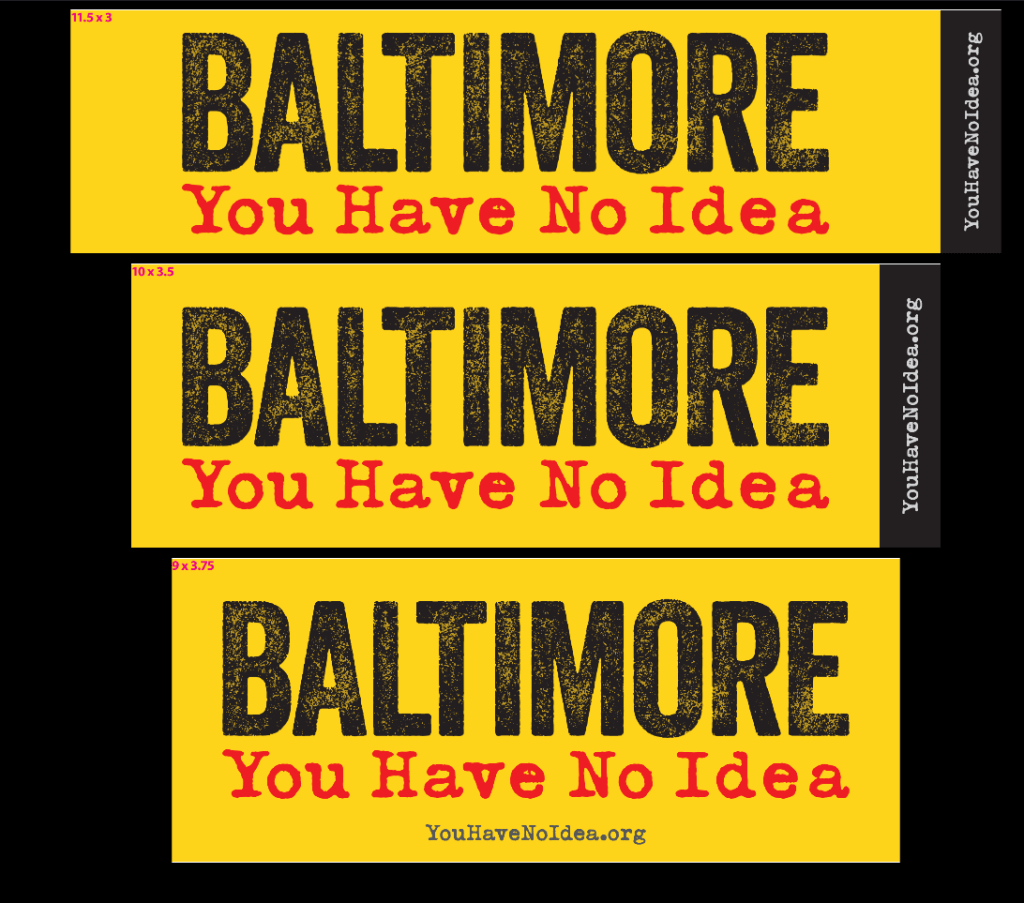 Todd Douglas of BoldYellow designed a new bumpersticker based on the title of my first play. We will be ordering a bunch in time for the December run at the Baltimore Museum of Art and offering them in return for a $5 donation to a charity to be named later. We might make other arrangements to sell them online, too. If so, we’ll let you know.