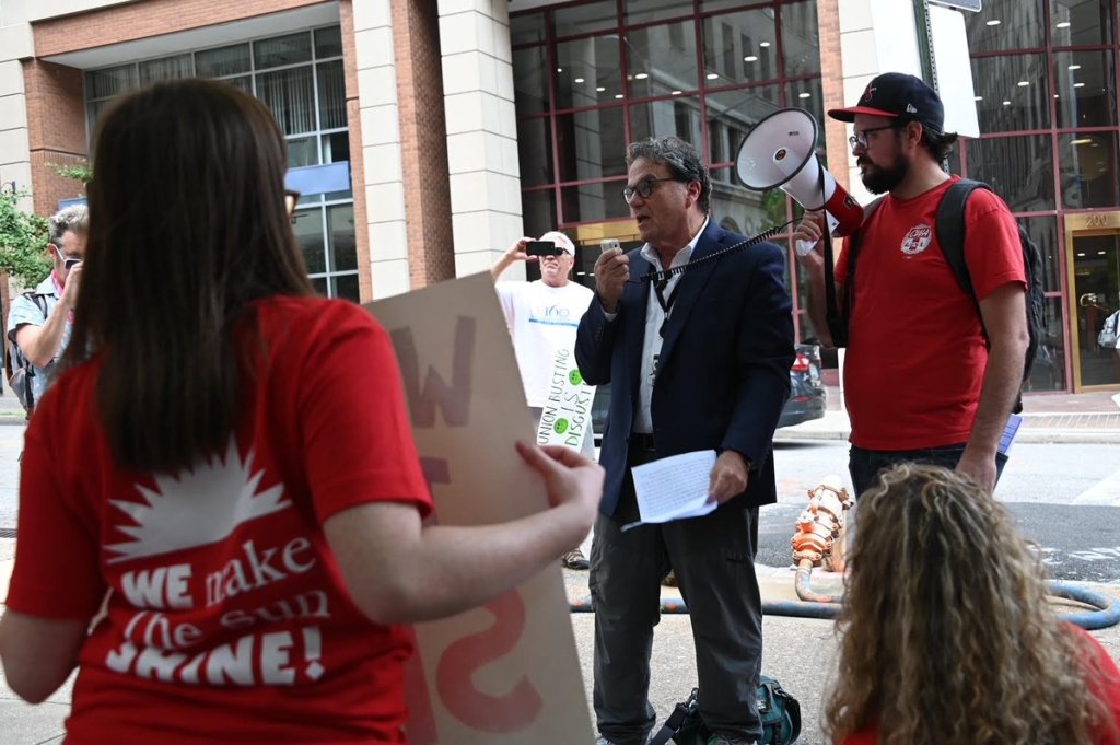 Members of the Baltimore Sun Guild rallied Wednesday in downtown Baltimore, outside the Sun newsroom, for a fair contract and an end to the substandard, non-Guild work that is now regularly filling our newspaper’s pages. Here are my remarks at the rally, followed by links to two news stories about our fight. There is also information about writing a letter directly to Sun management. Thank you for reading this.