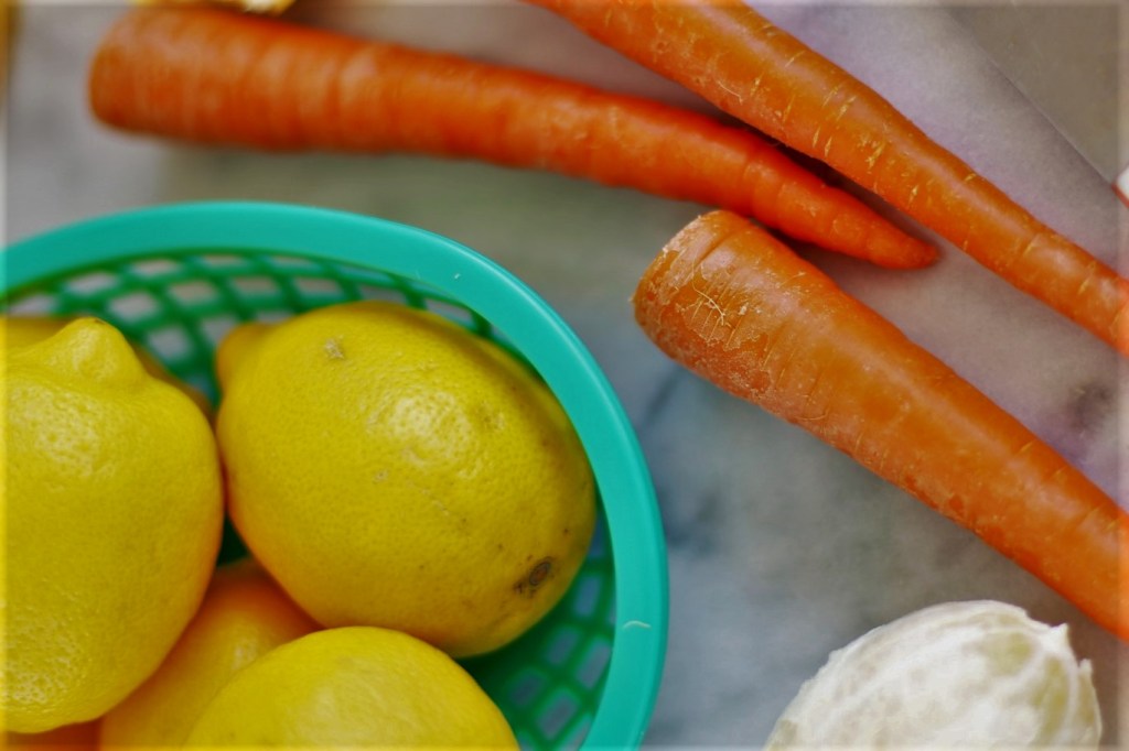 You will need carrots, garlic, lemon, capers and fresh parsley. You must be willing to chop a whole lemon (rind and all, but not the seeds) for this dish. Ingredients: Cooked carrots cut into discs, chopped garlic, parsley and whole lemon, olive oil, salt and drained capers.