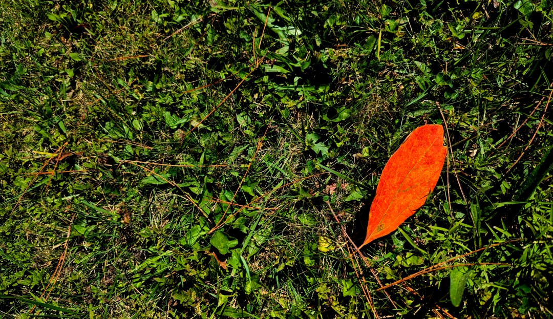 On a Labor Day hike, I came across this singular orange leaf. The calendar gives us three more weeks of summer, but here, I thought, was a premature sign of fall — this one orange leaf in a field by a river. It seemed to beckon me, with its striking color, so I took its picture — the first fallen, and fallen too soon, from the mother tree. It was a leaf dying, relative to the life cycle of leaves, before its time. As Jim Croce put it, in a song about loss before his death at age 30: “Isn’t that the way they say it goes?”