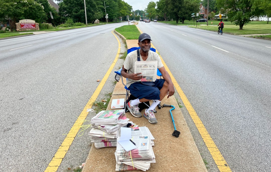 Readers of this column might remember a Sunday piece from last summer about the man in the photo above: Dennis Slaughter, a “somewhat disabled” fellow who sells The Sun on the Edmondson Avenue median strip in the Hunting Ridge neighborhood of Southwest Baltimore. After a couple of punks robbed him at gunpoint, the people of Hunting Ridge and some of his regular customers raised funds to make up for his losses and then some. It was Marsha Wise, a real estate agent and president of the Hunting Ridge Community Assembly, who presented Dennis with $200 and watched him cry at the gesture. “You don’t know how much this means to me,” Dennis said. “No one’s ever done this for me.’”