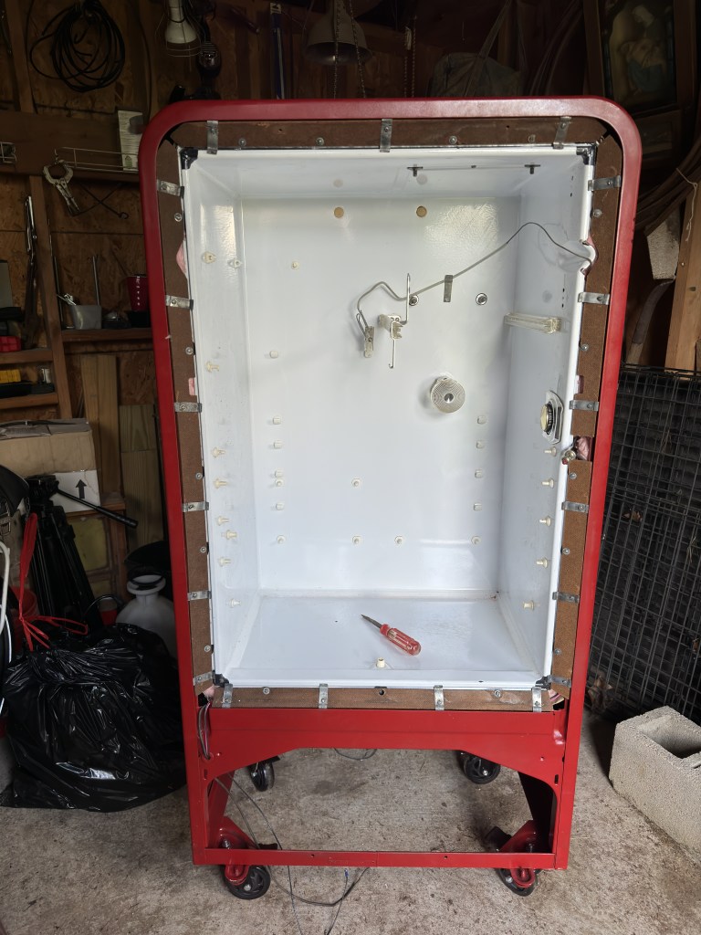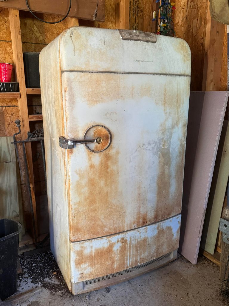 My friend Kurt Kolaja discovered an old refrigerator stuck between two old buildings on an old farm on Maryland’s Eastern Shore. For some reason, most likely having to do with his instinct for trouble, Kurt took the thing home, plugged it in and discovered it still worked. All it needed was some love. So here’s what happened: After many hours of scrubbing and sanding and painting, the old Frigidaire serves as a bright red backup in his pantry. Nice work, Kurt, you freak.