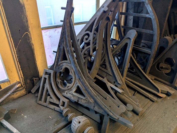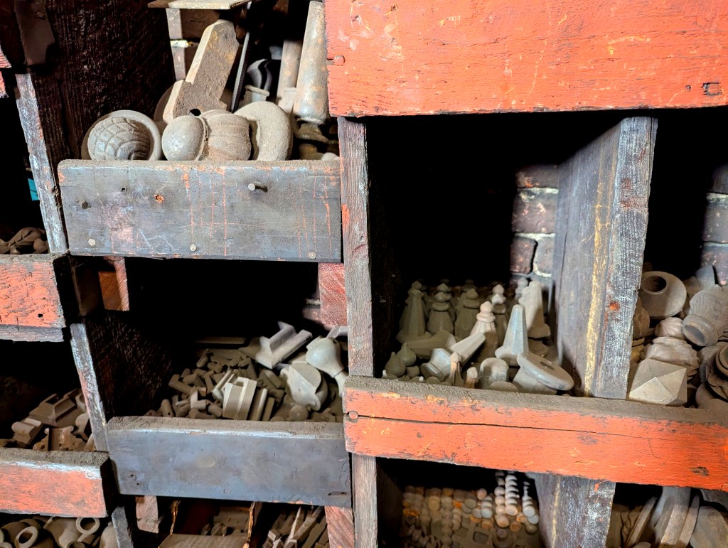 Peter Krug, the fifth generation of Krugs at the old ironworks on West Saratoga Street, took me through his shop one recent morning. After the tour, upstairs and down, I concluded that no place in Baltimore has a richer feel of yesterday, so real you can touch it and come away with dust on your fingers. G. Krug & Son is cluttered with objects — tools, patterns and samples of ornamental iron — from the last century and the century before that. If it seems that nothing has been discarded, there’s good reason: Krug now restores or replicates the ironworks that came out of the factory ages ago. G. Krug is said to be the oldest ironworks factory in the country, still operating in its 215th year. Please see the photos that follow, and you can read about it in my column for Baltimore Fishbowl.