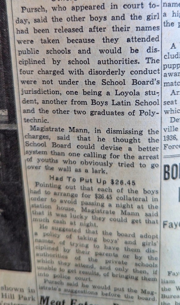 In one Saturday edition of The Evening Sun, from October 1940, we find no reports of homicides or even armed robbery. But here’s a sample of what passed for crime news: