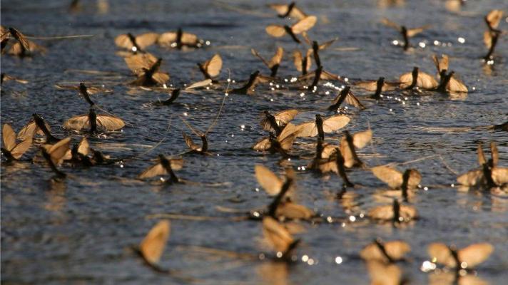 These flies were a mixture of green drakes and what fly anglers call sulfurs, or Ephemerella invaria and Ephemerella dorothea. These insects begin life in the bottom of the river then, in time, emerge at the surface and, unless consumed by a rising trout, they manage to fly and mate and spin and die. Theirs is not a long life out of the water.