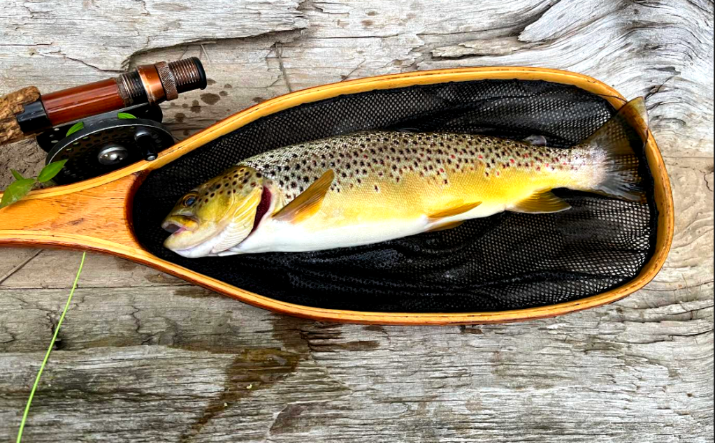 A friend prevailed, however. He managed to attract the attention of this brown trout, then released him back to the water to finish his feasting.