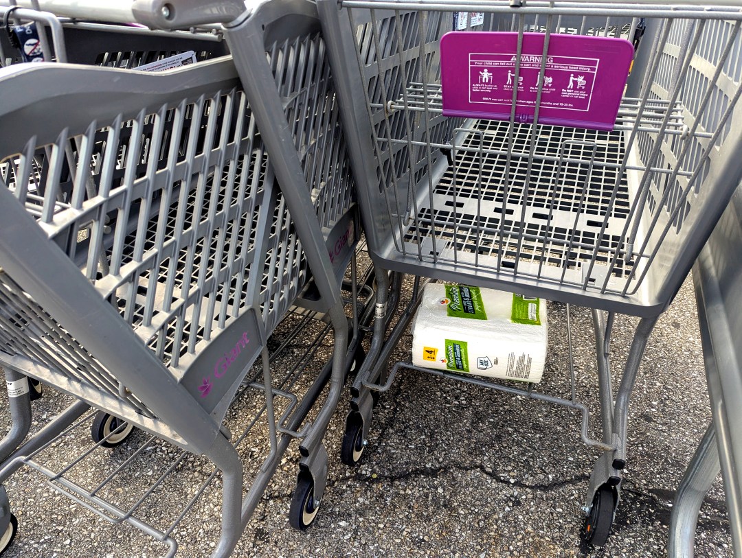 So you park your car in the shopping center parking lot, a couple of safe spaces from a carriage corral. You get out. You grab a carriage from the carriage corral. As you do this, you notice a double-roll package of paper towels in the lower tray of one of the other carriages. Having watched almost every episode of “Monk,” you use your superficially-developed detective logic to deduce that an earlier shopper had left it there. Someone had forgotten to pack it for the ride home.