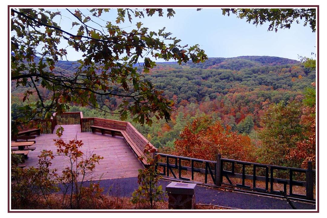 I did not want to let October pass without telling you about this again. It’s the big deck in Green Ridge State Forest, between the communities of Bellegrove and Flintstone. Interstate 68 takes you right there. Attached to one of the highway exit signs — for exit 64, to be exact — you’ll find one of those blue “scenic overlook” signs. I stopped there for the first time nearly 30 years ago and had the good fortune to stumble upon (but not off) what I came to consider to be Maryland’s best deck, high on a slope overlooking a section of Fifteen Mile Creek and a forest about 100 years old — that is, a place where the trees have been left to grow under state management since the land’s last use as an agricultural enterprise. Maybe I need to get around more and visit more decks. But I’ve been on a lot of them, and, being a big fan of trees, this is my favorite. It’s in a state forest, an area with an interesting history, and it’s open to the public. When conditions are right — or even when not — you get a moment just to stand there and be awed.   Green Ridge also offers an overlook of the Potomac River. More information is available from the Maryland Department of Natural Resources.