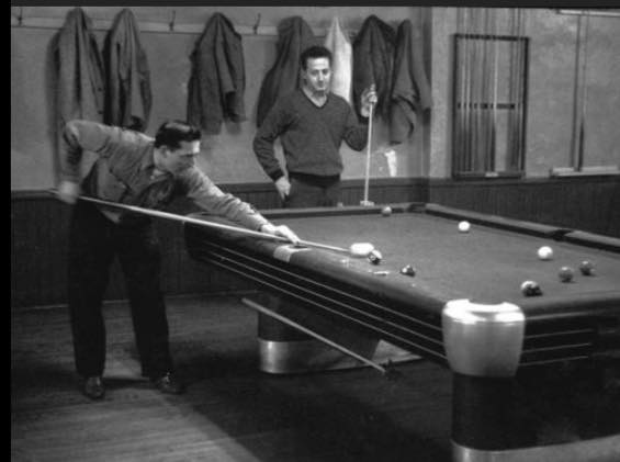 The guys in the black-and-white photos evoked Sal Mineo and James Dean. One fellow sported a Sinatra-style fedora and puffed a cigar. There were guys in skinny ties and sport coats, guys in nice cardigans, guys bending over pool cues, hovering over cards, banging away at Benny’s pinball machines.
