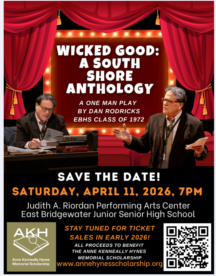 “Wicked Good” is a benefit performance for the the Anne Kenneally Hynes Memorial Scholarship in East Bridgewater. The scholarship fund has awarded more than $76,000 to qualifying East Bridgewater graduating seniors since 2014. The scholarship was created to honor Anne Kenneally Hynes, a longtime East Bridgewater High School librarian.