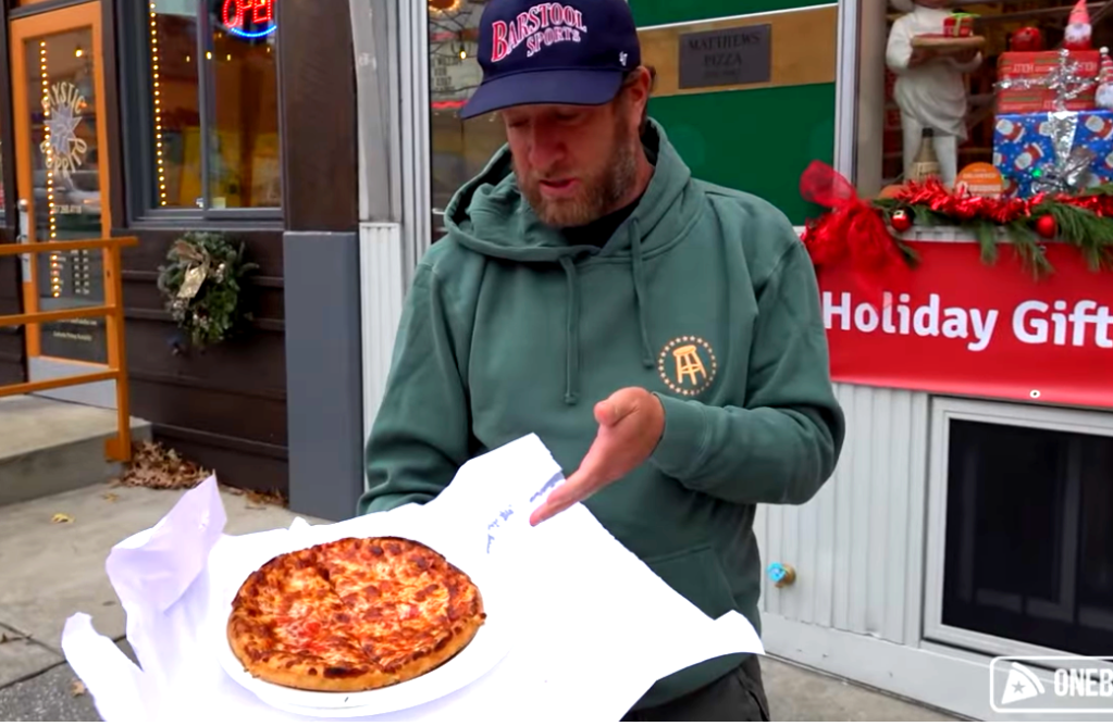 “This is a South Shore Massachusetts bar pie,” the founder of Barstool Sports declared last winter, as he sampled a freshly-baked pizza on the sidewalk outside Matthew’s. “It’s a bar pie, a good one.”