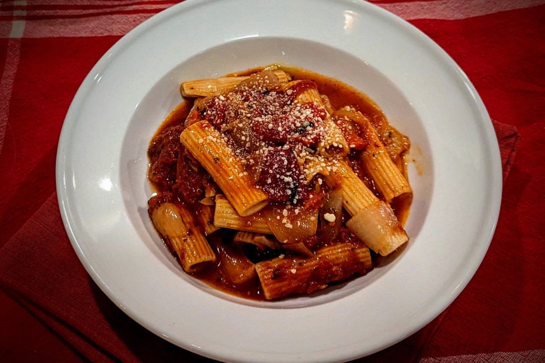I invented a one-pot, sweet and spicey pasta dish during the recent winter hibernation. It’s called Rigatoni dolci e piccanti. You need a big pot, olive oil, two onions, four cloves of garlic, four red bell peppers, four cups of chicken or vegetable stock (heated or at room temperature), a half-pound of rigatoni and two cups … Continue reading Recipe: Rigatoni dolci e piccanti