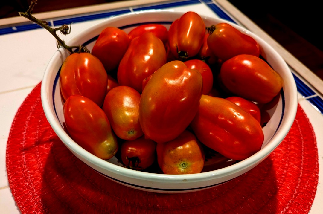 Our San Marzano tomatoes, the Champagne of plum tomatoes, are starting to come in, though apparently it’s a violation of European Union rules to call them San Marzano tomatoes when they are grown in a Baltimore backyard or anywhere other than in the Sarno Valley of Italy. The Italians will dispatch consiglieres and Carbiniere if … Continue reading In praise of San Marzano